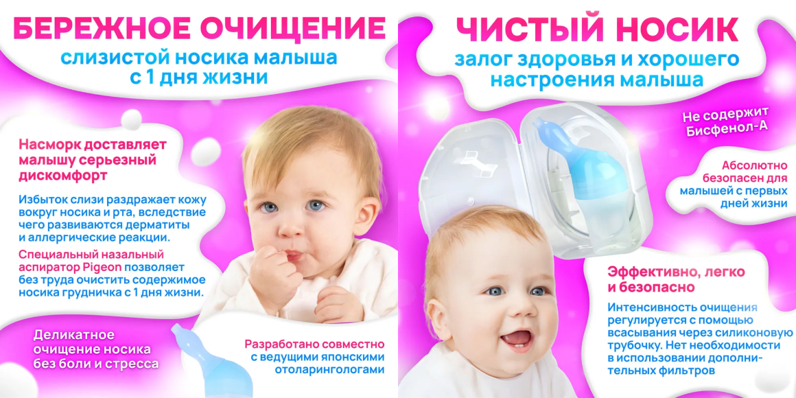 Легкое, безопасное и деликатное очищение слизистой носа детей с рождения. Аспиратор разработан совместно с ведущими врачами-отоларингологами Японии. Откачиваемая слизь попадает и скапливается во флаконе, не попадает обратно в трубочку. Мягкий U-образный наконечник не соприкасается со слизистой носа. Позволяет без труда очистить содержимое носика малыша при помощи взрослого. Благодаря мягкой силиконовой трубочке возможно использование под любым углом. Удобство и безопасность в использовании. Интенсивность очищения регулируется с помощью всасывания через силиконовую трубочку. Нет необходимости в использовании дополнительных фильтров. Не содержит Бисфенол А. В комплекте с футляром для гигиеничного хранения. Во избежание попадания слизи через трубочку необходимо чтобы корпус аспиратора располагался вертикально, ниже носика малыша.